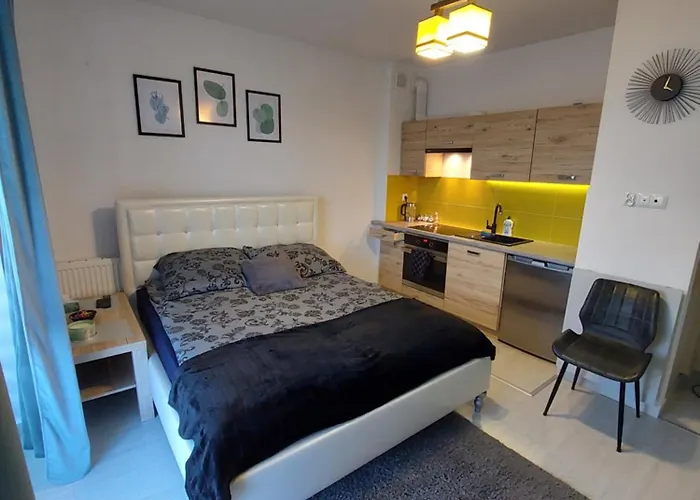 1-pokojowy apartament znajduje się 10 min jazdy od Rzeszowskiej Fontanny Multimedialnej. Do centrum Rzeszowa można dojść spokojnym krokim w kilka minut.